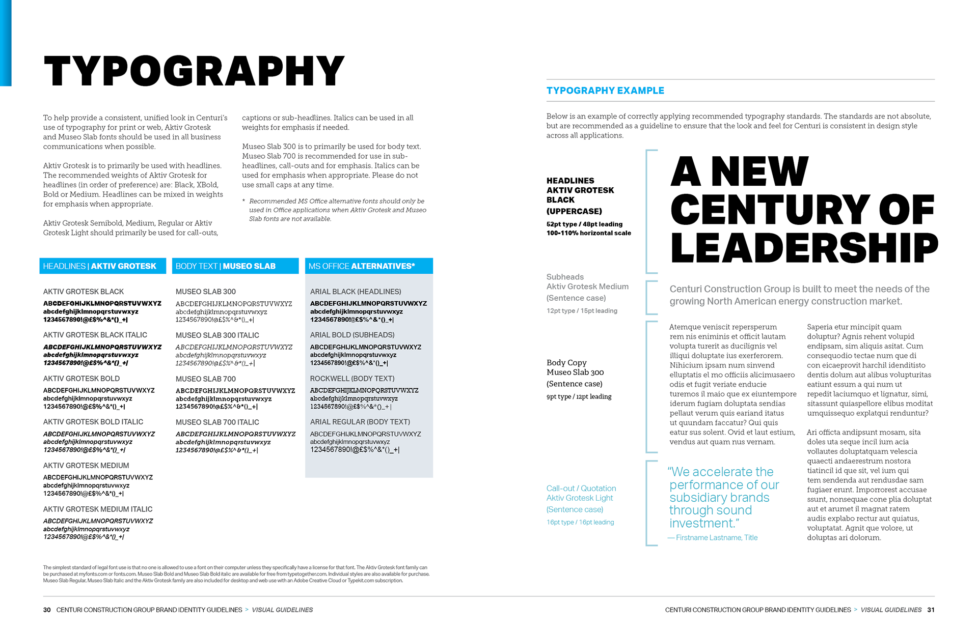 Brand identity, development and guidelines book we created for NPL's new parent company: Centuri Construction Group—a $5B organization with over 6,000 employees in the US and Canada. We created the name, logo, typography, color palette, brand positioning and every design element associated with the brand's development. It was truly a pleasure to watch this company come into its own as it staked out an exciting new chapter in the organization's evolution.