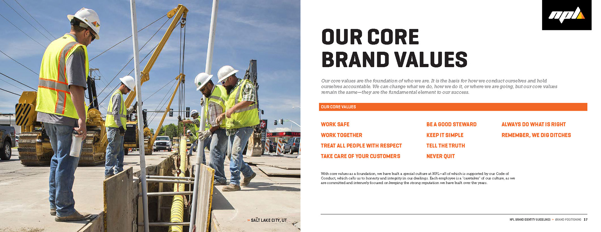 In late 2014 I was brought in by Tempe's Parker Madison to help put the finishing touches on their rebranding efforts for their client, NPL Construction Co., selecting typefaces, colors and pulling together a brand look and guidelines book to match the new logo they designed. It was a great experience working with the Parker Madison team and NPL. It's refreshing to work with a client who truly appreciates and embraces the new brand look that we created for them.