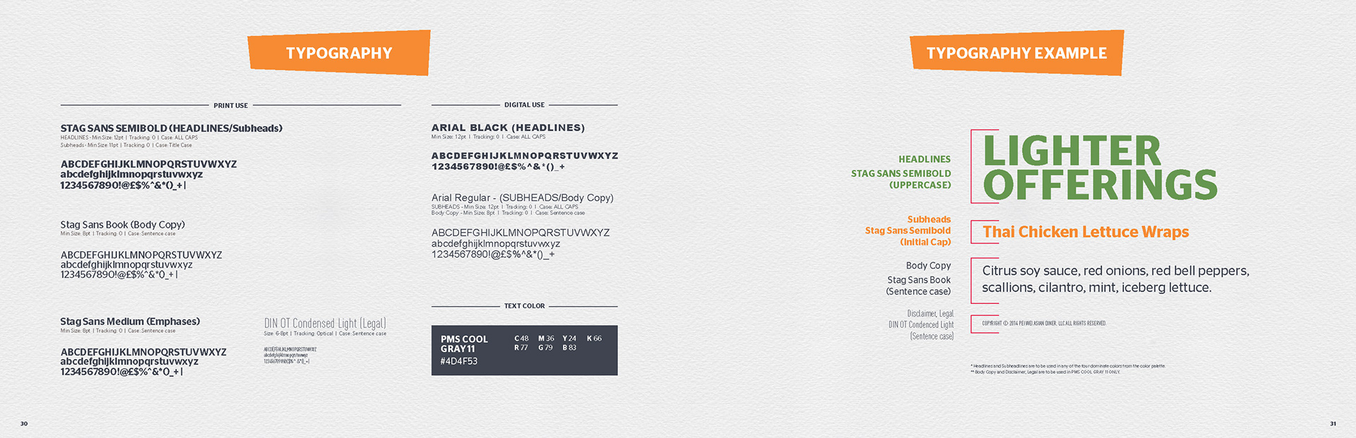In 2014 I was brought in by PFCB to help design a new brand guidelines book for their recently brand refreshed fast casual restaurant Pei Wei. This book was designed to provide clear brand guidelines for their international and airport locations, of which, many are franchised. It was a great experience working the PFCB team and it has been a pleasure to watch the brand evolve in the time since.