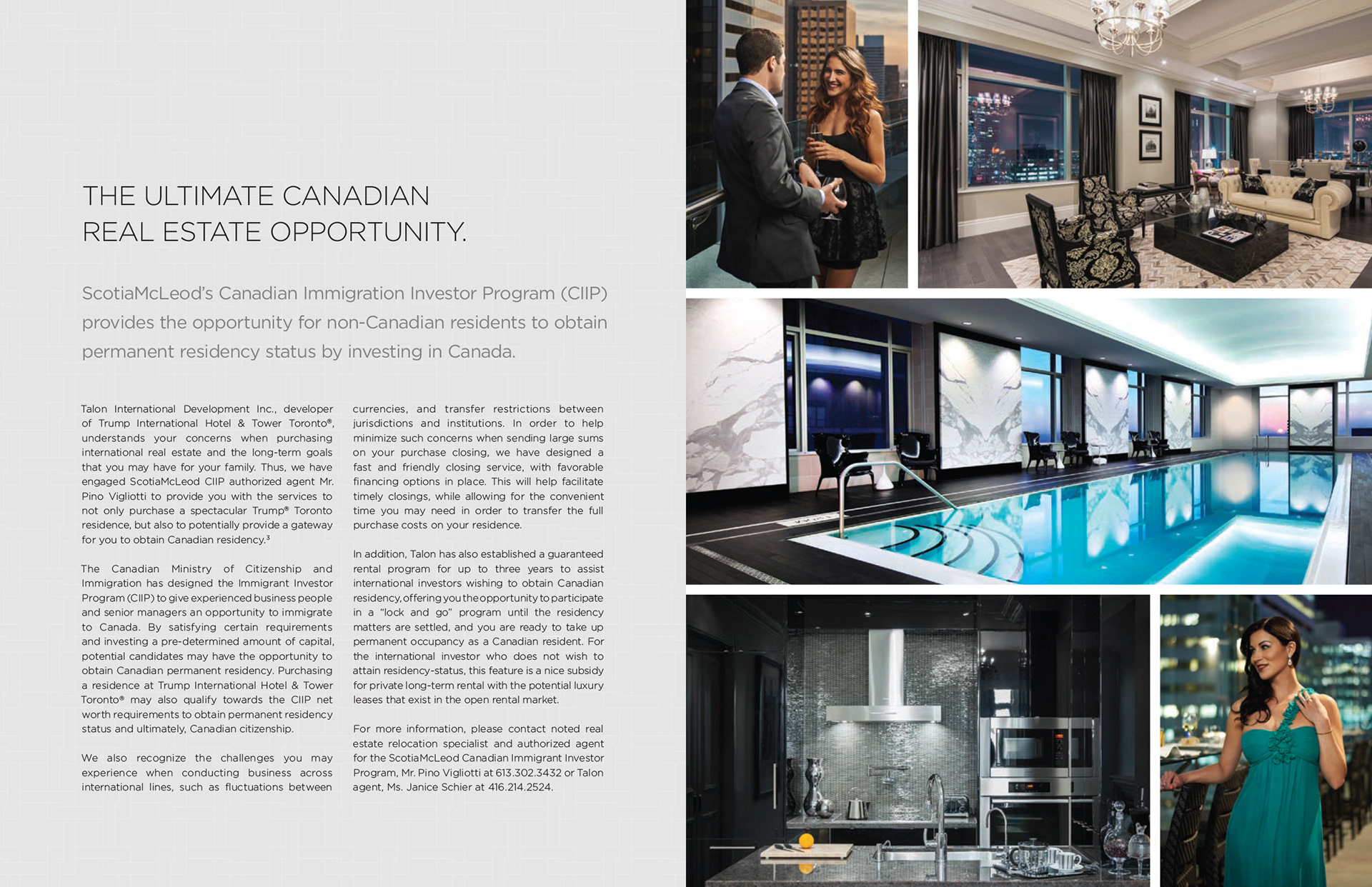 Selections from an international brochure I created promoting the CIIP program and Trump Toronto to overseas real estate purchasers and investors.